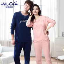 梦里情柔2016秋季情侣纯棉长袖睡衣韩版加大码男女家居服可外穿