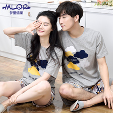 梦里情柔2017夏季情侣短袖睡衣纯棉卡通男女休闲家居服套装可外穿