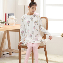 韩版春秋季女人睡衣pink纯棉长袖秋冬可爱睡裙韩国代购家居服套装