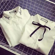 韩国tfboys同款衬衣白色字母衬衣女春潮学院风百搭 衬衫款女衬衣