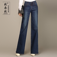 阔腿裤女长裤2017春装新款高腰牛仔裤宽松喇叭裤大脚裤显瘦裤子
