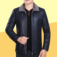 绅贵鹿男装皮衣中年男士西装领pu皮夹克衫修身皮外套男夹克潮