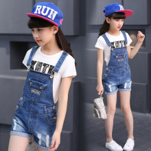 女童牛仔背带短裤2017新款8-9-10-11-12岁女大童短裤夏小孩热裤潮