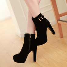 秋冬款性感厚底高跟女鞋 绒面粗跟黑色短靴 时尚百搭马丁靴女靴