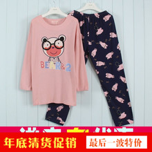 正品安之伴2016秋季新款 针织棉麻素色绣小熊长袖女睡衣套63D7474