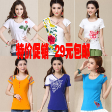 特价包邮民族风女装2016夏装上衣修身刺绣花百搭短袖女T恤打底衫