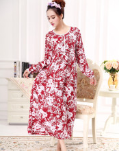 春秋季新款女士长袖长款加大码胖MM可穿纯棉绸开扣睡裙睡衣家居服