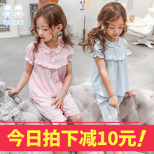 儿童睡衣夏季女童纯棉家居服短袖女孩小公主睡衣套装空调服
