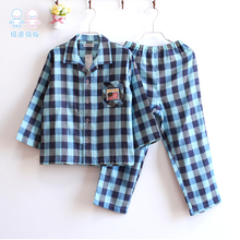 儿童睡衣全棉双层纱布春秋男童长袖韩版亲子家居服男孩中大童套装