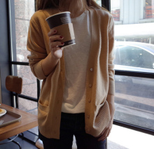 2017新款春中长款羊绒开衫女韩版气质修身口袋针织羊绒衫外套毛衣