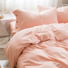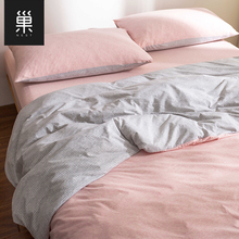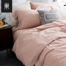 日式纯色棉麻水洗棉四件套全棉纯棉1.5/1.8m床单被套简约床上用品