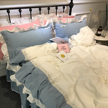 韩式公主风四件套水洗纯棉床裙花边全棉拼接撞色出口简约纯棉床品