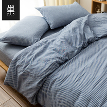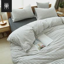 日系良品天竺棉针织纯棉四件套简约条纹全棉床单床笠被套床上用品