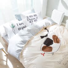 家纺全棉四件套1.8米北欧简约纯棉卡通双人床单被套1.5m床上用品