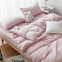 ins韩版水洗棉床上四件套全棉公主1.5纯色床单1.8m纯棉4件套床笠
