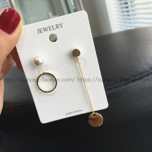 SuzyAcc.韩国代购现货 圆环珍珠 不对称耳环时尚百搭耳钉三件套
