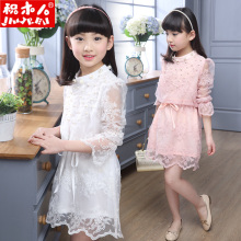 2016新款童装春装女童连衣裙宝宝裙子时尚欧根纱绣花儿童连衣裙