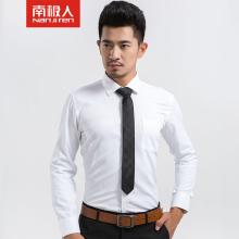 南极人2017春季新款修身男士衬衣 简约百搭纯色长袖衬衫免烫抗皱