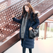 韩版貉子毛长款女式羽绒服加长过膝加厚外套黑色女欧洲站高端冬gq