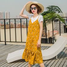 雪纺连衣裙2017夏装新款宽松大码吊带两件套碎花波西米亚中长裙