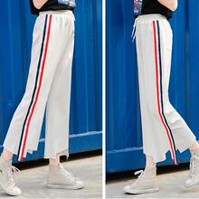 2017夏季新款两条杠侧边条白色运动休闲裤 女 九分校服女裤