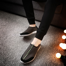 春夏真皮时尚韩版网鞋男 透气一脚套男鞋套脚男鞋低帮鞋子男潮