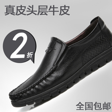 秋季头层牛皮纯色休闲鞋男透气英伦套脚皮鞋男真皮潮流低帮鞋单鞋