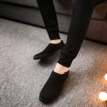 男鞋夏季套脚帆布鞋男纯色男鞋透气板鞋休闲一脚蹬乐福鞋男鞋子男