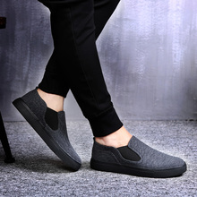 夏季男士帆布鞋透气布鞋休闲鞋板鞋一脚蹬懒人鞋乐福鞋子低帮男鞋
