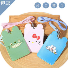 包邮可爱PU皮创意学生公交卡套 工作证件套 幼儿接送卡挂绳地铁卡