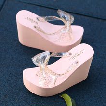 夏季超高跟蝴蝶结女士人字拖 防滑厚底夹拖凉拖鞋松糕沙滩鞋坡跟