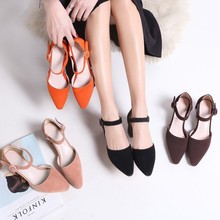 2017新款猫跟尖头罗马凉鞋女夏季韩版单鞋一字扣带细跟包头高跟鞋