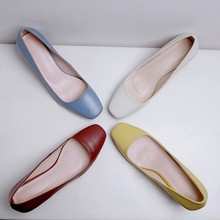 2017韩版春季新款方头浅口单鞋女真皮粗跟鞋工作女式气质鞋子羊皮