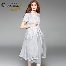 Crocodile/鳄鱼恤夏绣花高端真丝连衣裙桑蚕丝大码宽松中长连衣裙