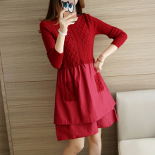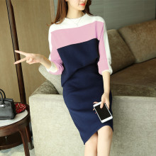 毛衣拼接连衣裙长款毛衣针织衫套头2016韩版秋冬装新款针织衫女装