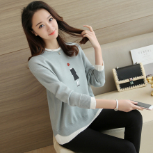 歌菲度2017春秋装新款女装毛衫外套中学生韩版假两件套毛衣针织衫