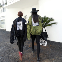 潮 2017春季新品刺绣字母oversize宽松纯色拉链棒球衣缎料外套女