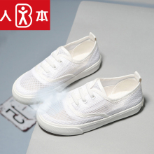 人本童鞋2017夏季新款儿童帆布鞋网布透气男童休闲运动女童小白鞋