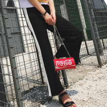 2017春夏新款拼色休闲开叉运动裤女黑色高腰显瘦喇叭长裤阔腿裤潮