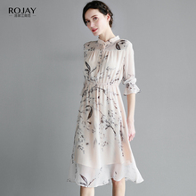 江南范连衣裙春秋2016新款 桑蚕丝裙子夏中长款印花真丝连衣裙