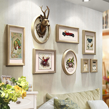 添色彩绘 创意北欧鹿照片墙组合 客厅餐厅欧式相片墙 挂墙相框墙
