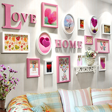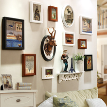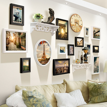 添色彩绘欧式客厅照片墙创意置物架挂墙相框墙组合大墙面相片框