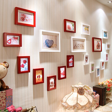 添色彩绘 实木照片墙 心形创意个性挂墙相框墙组合相片墙结婚礼物