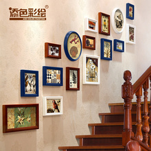 添色彩绘欧式楼梯照片墙新品创意楼道挂墙相框组合相片墙结婚礼物