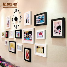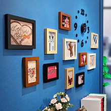 添色彩绘 照片墙实木清新相片墙 挂墙相框墙创意个性挂钟组合11B