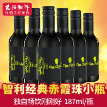 智利原瓶进口小支红酒单一赤霞珠干红葡萄酒6支整箱187ml小瓶红酒
