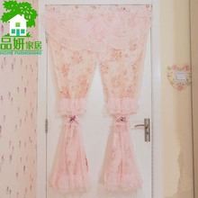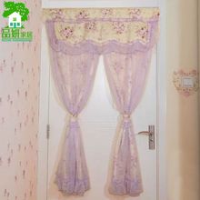 新款 长帘送杆包邮门帘布艺紫色蕾丝 卧室隔断挂帘韩式田园半帘