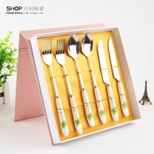 四叶草6件套陶瓷餐具赠品礼盒韩式创意陶瓷柄不锈钢刀叉勺子筷子