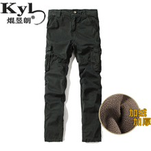 秋冬款大码长裤工装裤军绿男加绒男裤冬天军装多口袋帆布加厚工裤