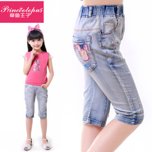 章鱼王子2017新款儿童装女童牛仔裤夏季夏天薄款中裤马裤五分裤子